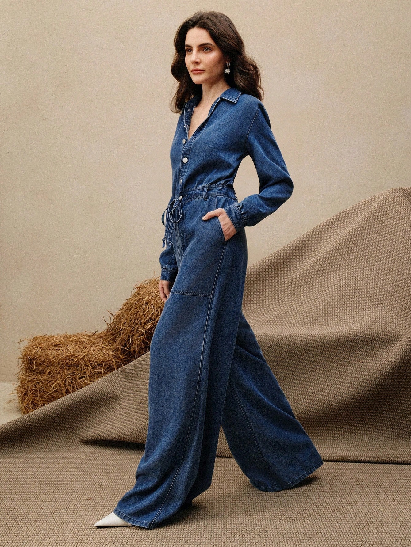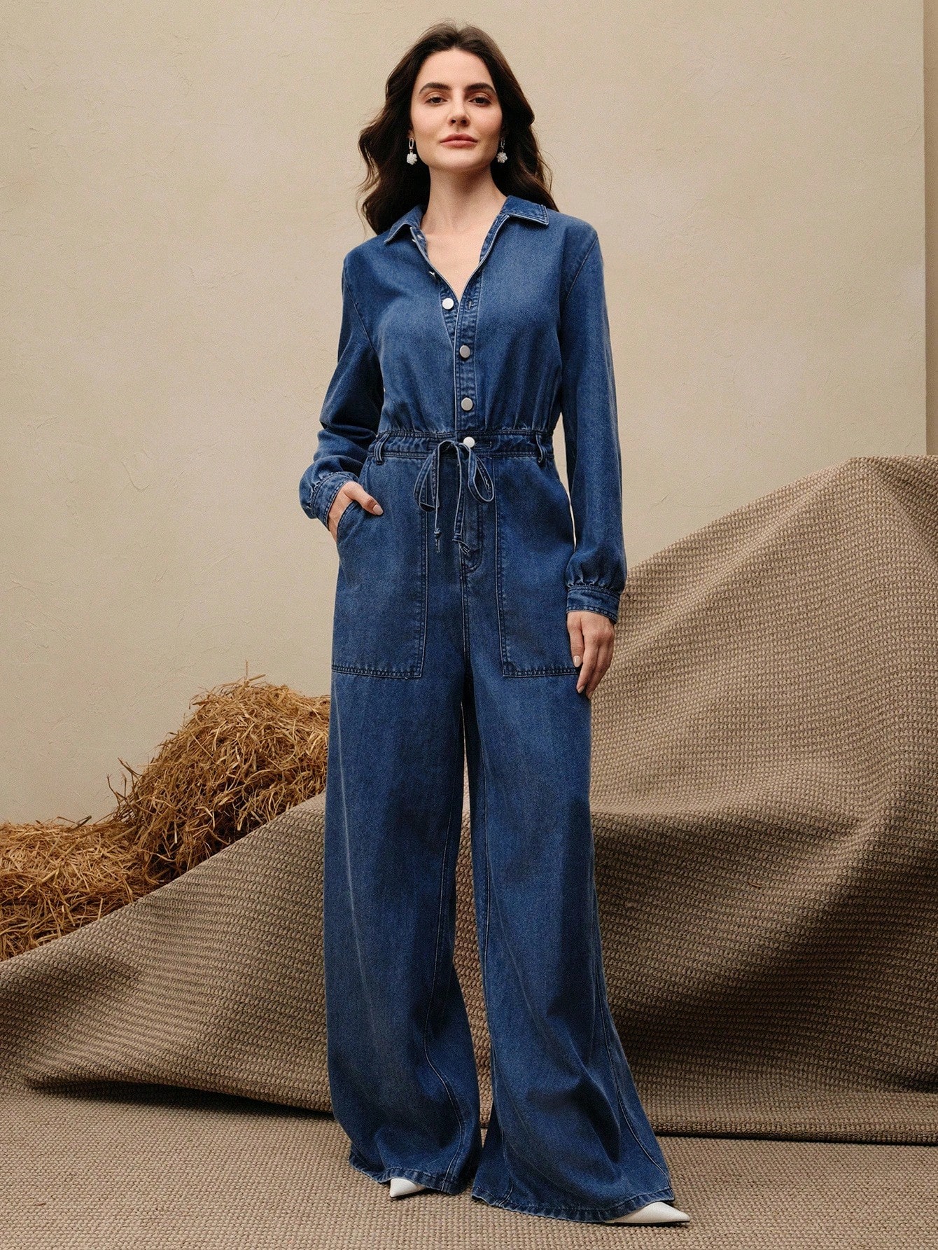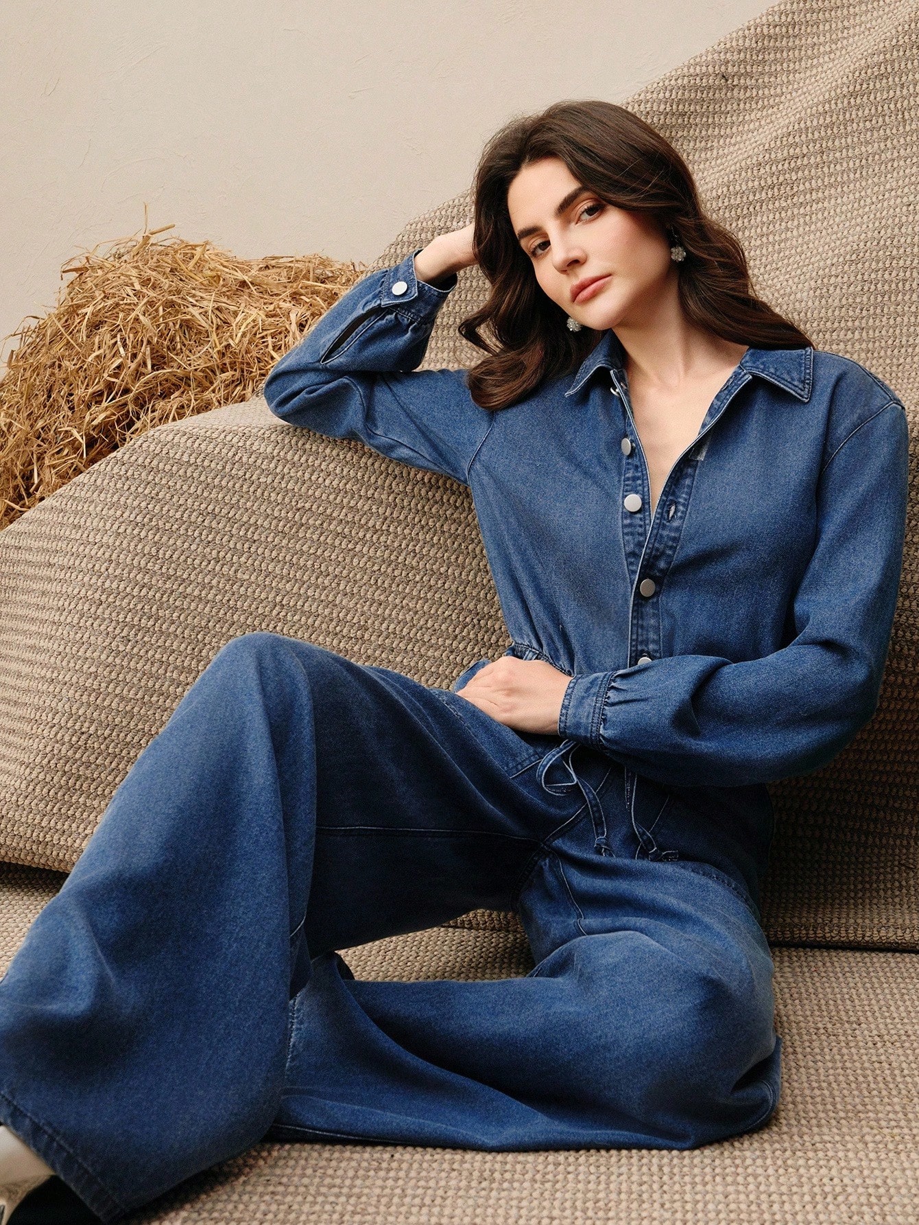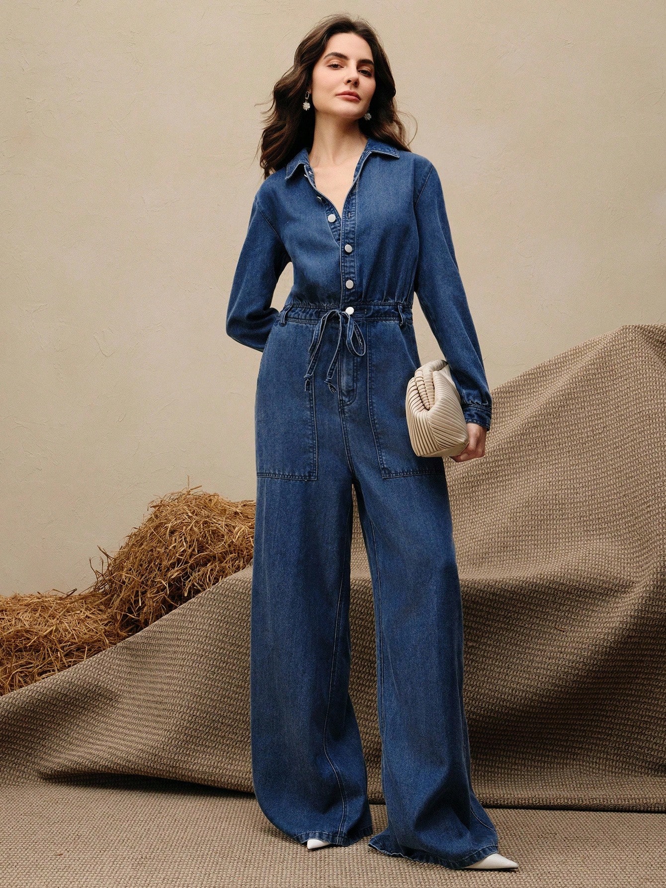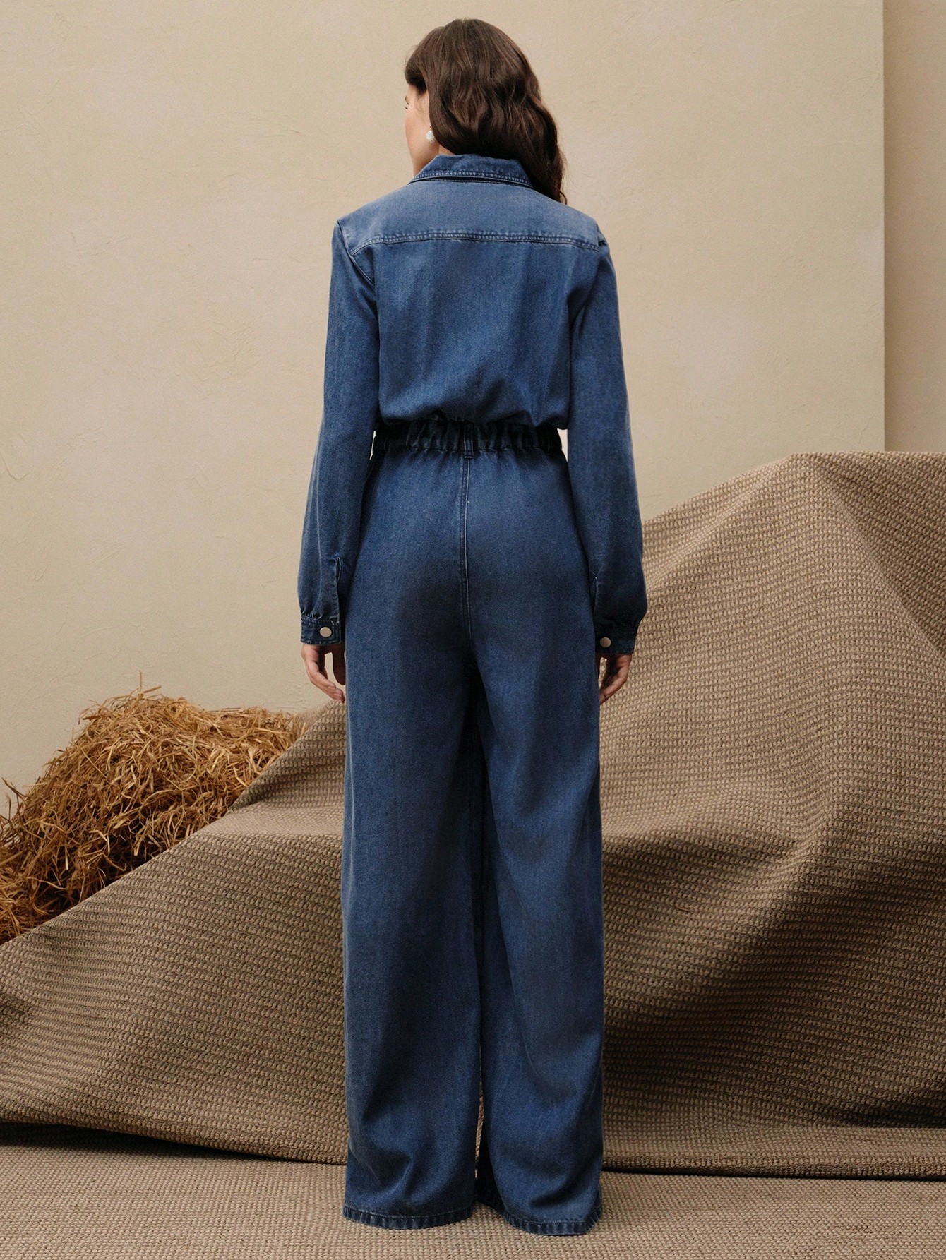 جمبسوت جينز مغسولة للنساء، جمبسوت كاجوال للعطلات، للربيع/الخريف