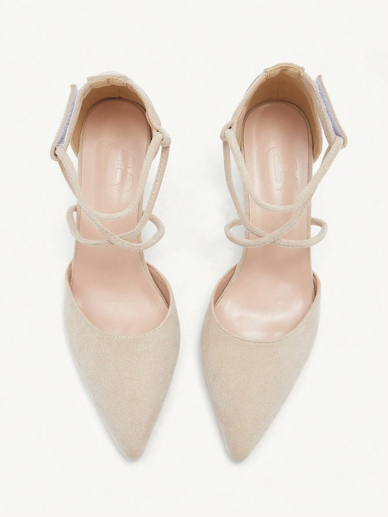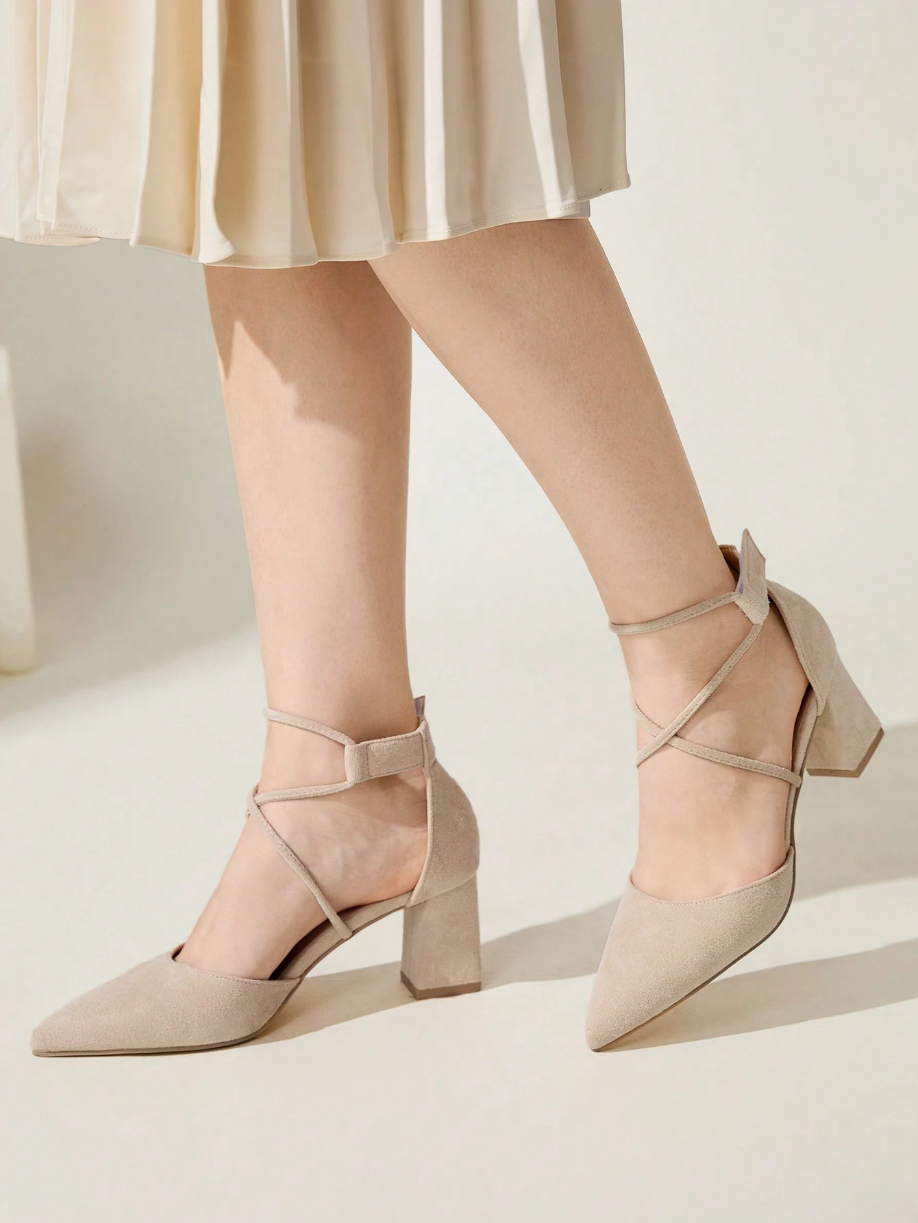 أحذية كعب عالي مدبب الأصبع من نوع كروسيت بكعب سميك، للنساء، لون المشمش، إغلاق بسوستة و فيلكرو، مناسبة للنزهات والمواعيد والحفلات والأعياد والزفاف وعيد الحب والربيع والكريسماس وحفلات التخرج