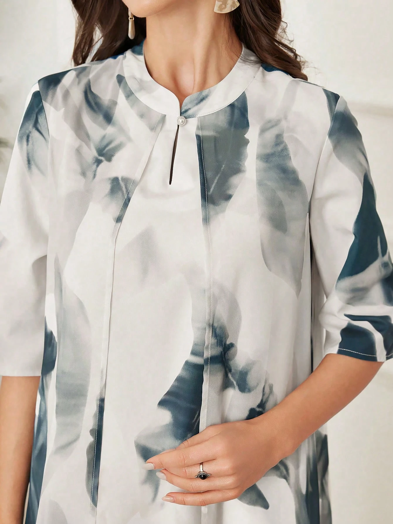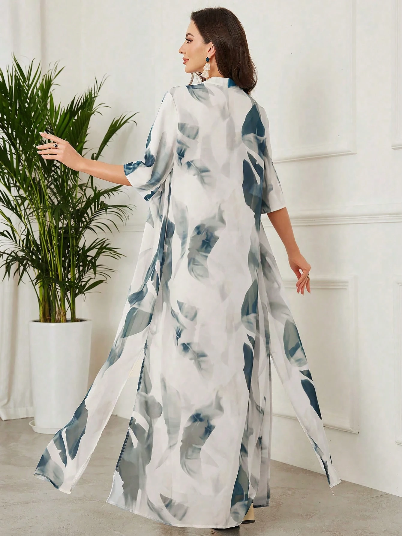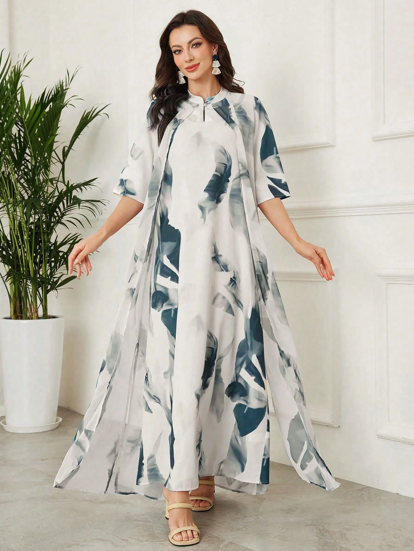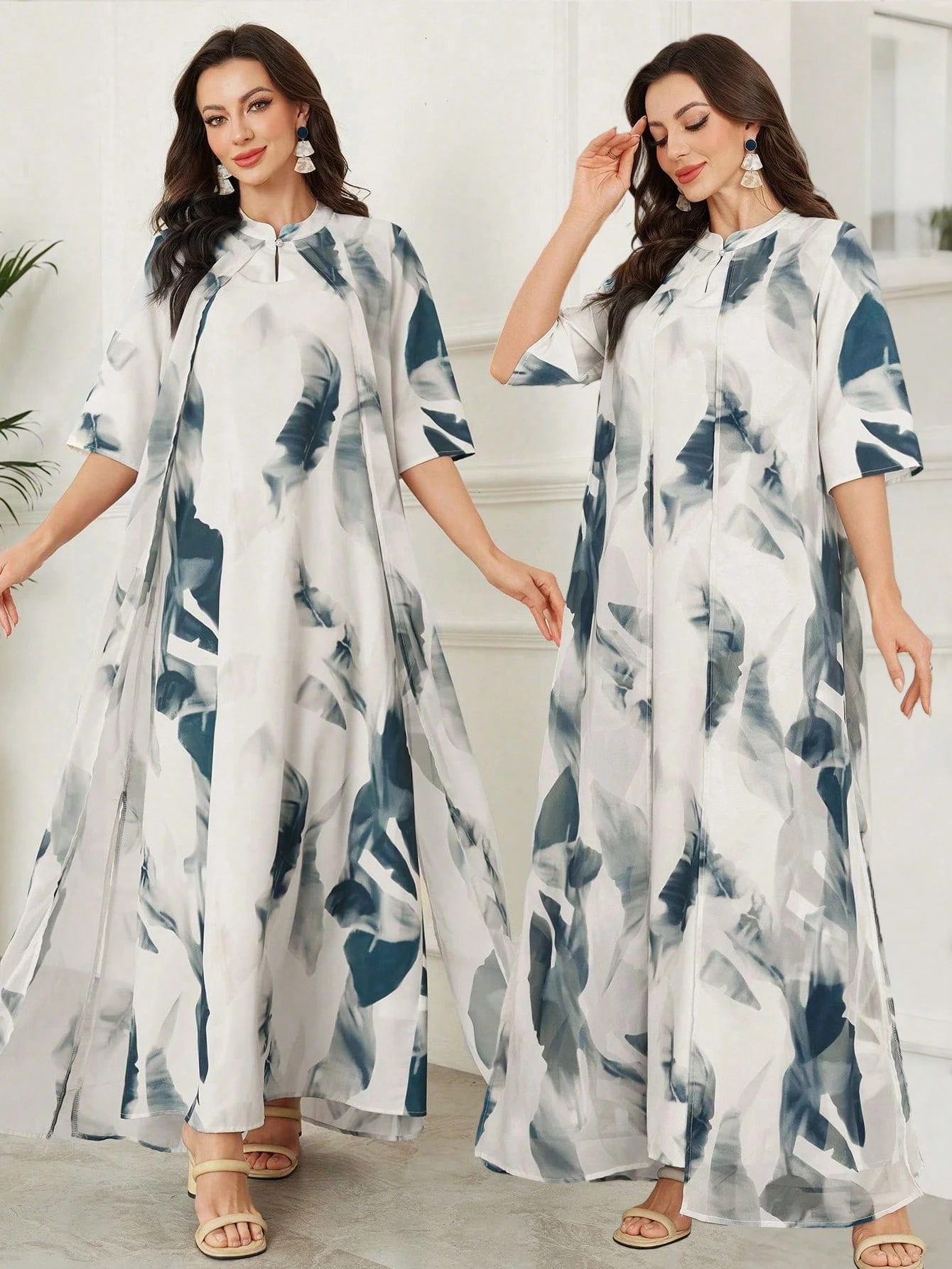 فستان كاجوال عربي أنيق للنساء بأكمام قصيرة وطباعة صبغة الربط لطبعة نموذجية