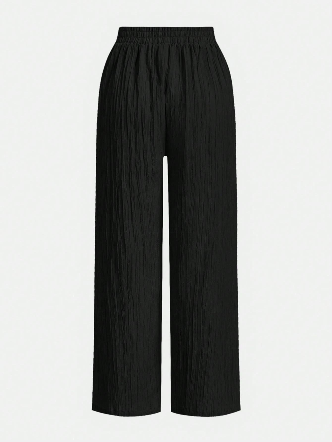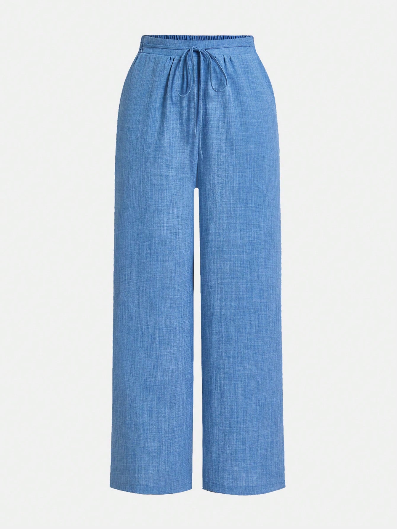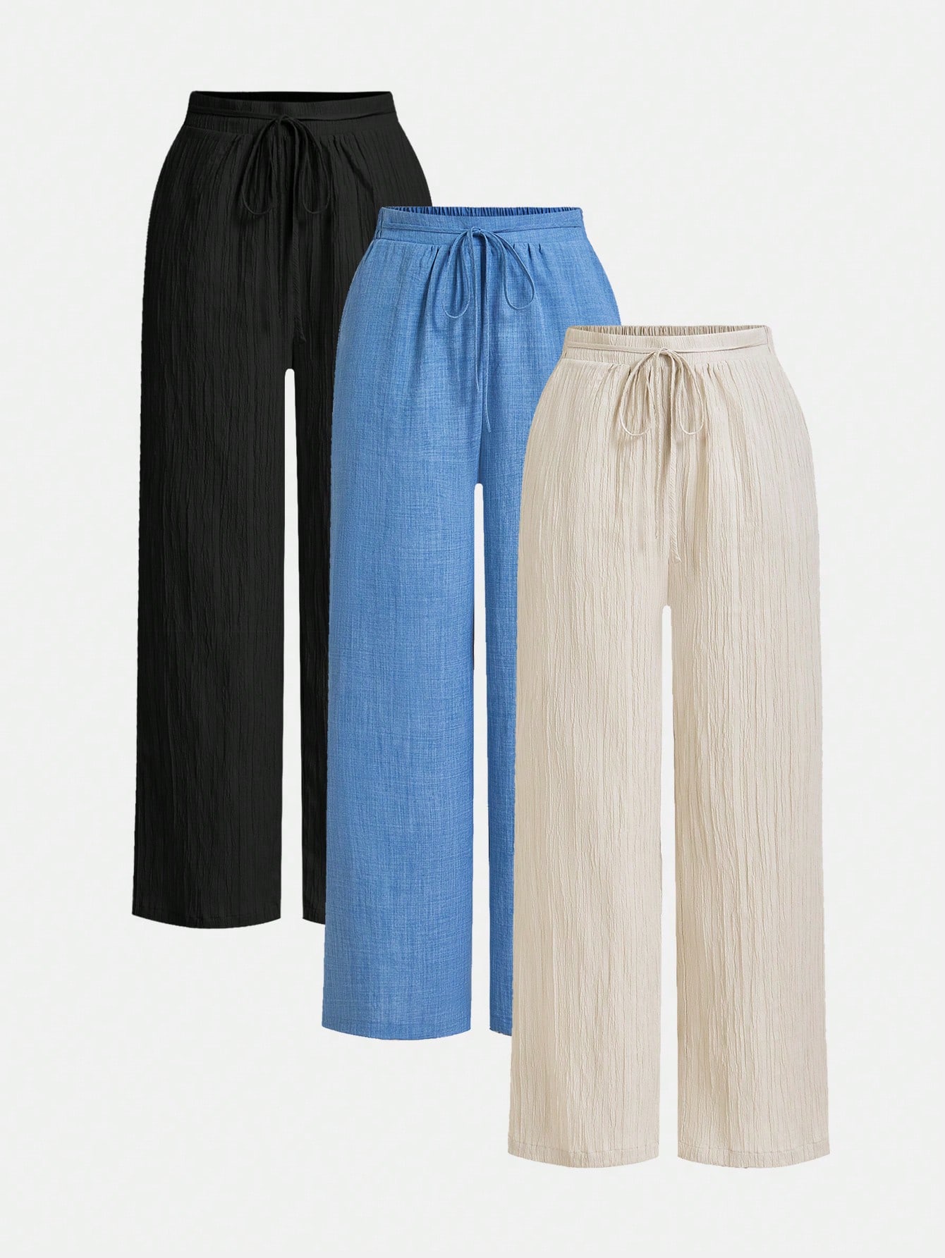 حزمة 3 بنطلونات صيفية للنساء بارتداء مرن وفضفاض بخصر ربطة عريضة الساق