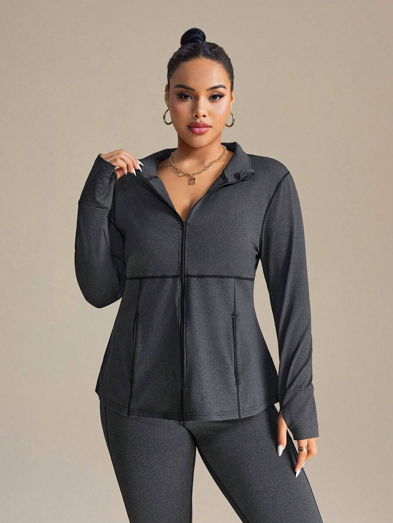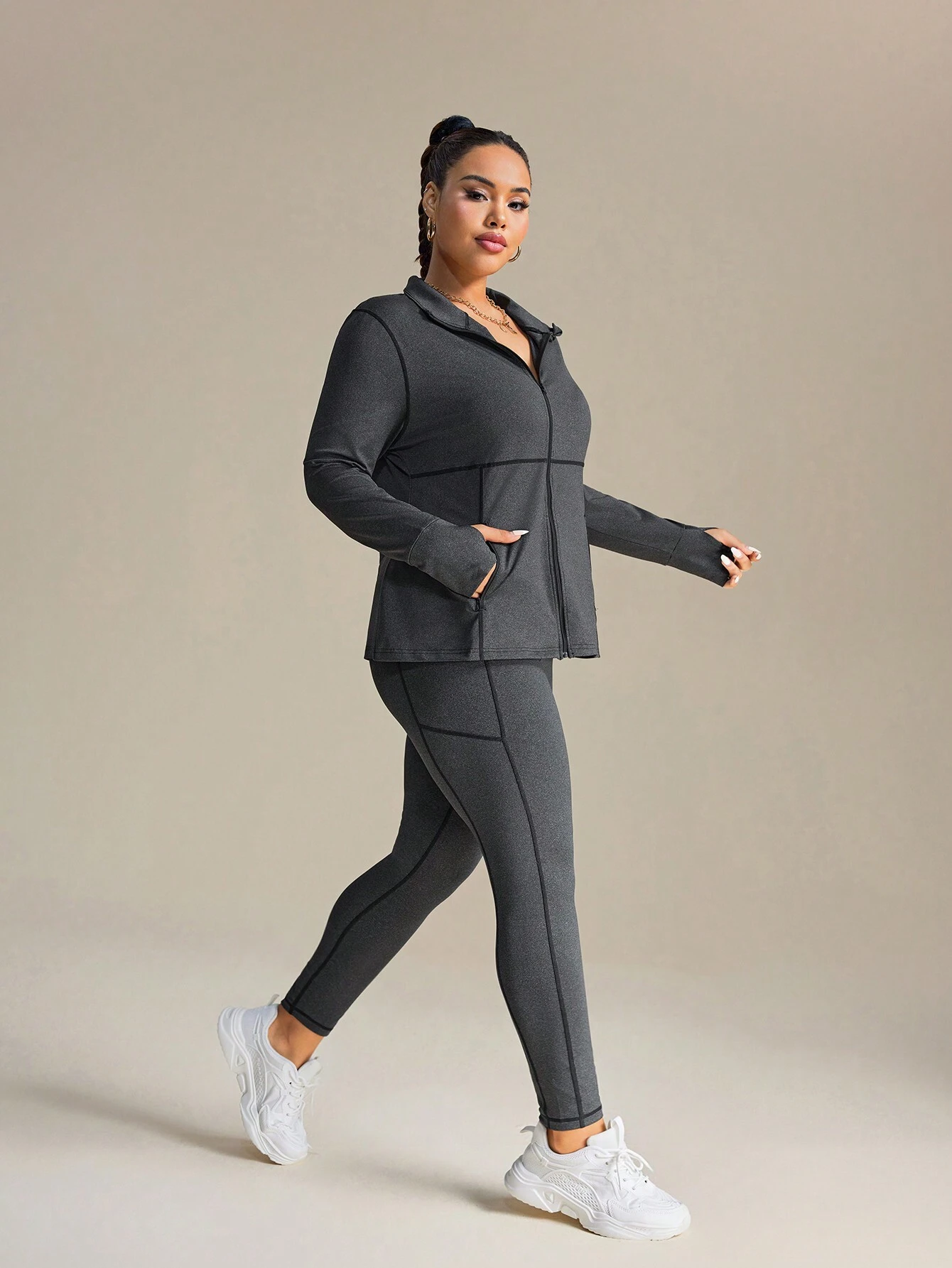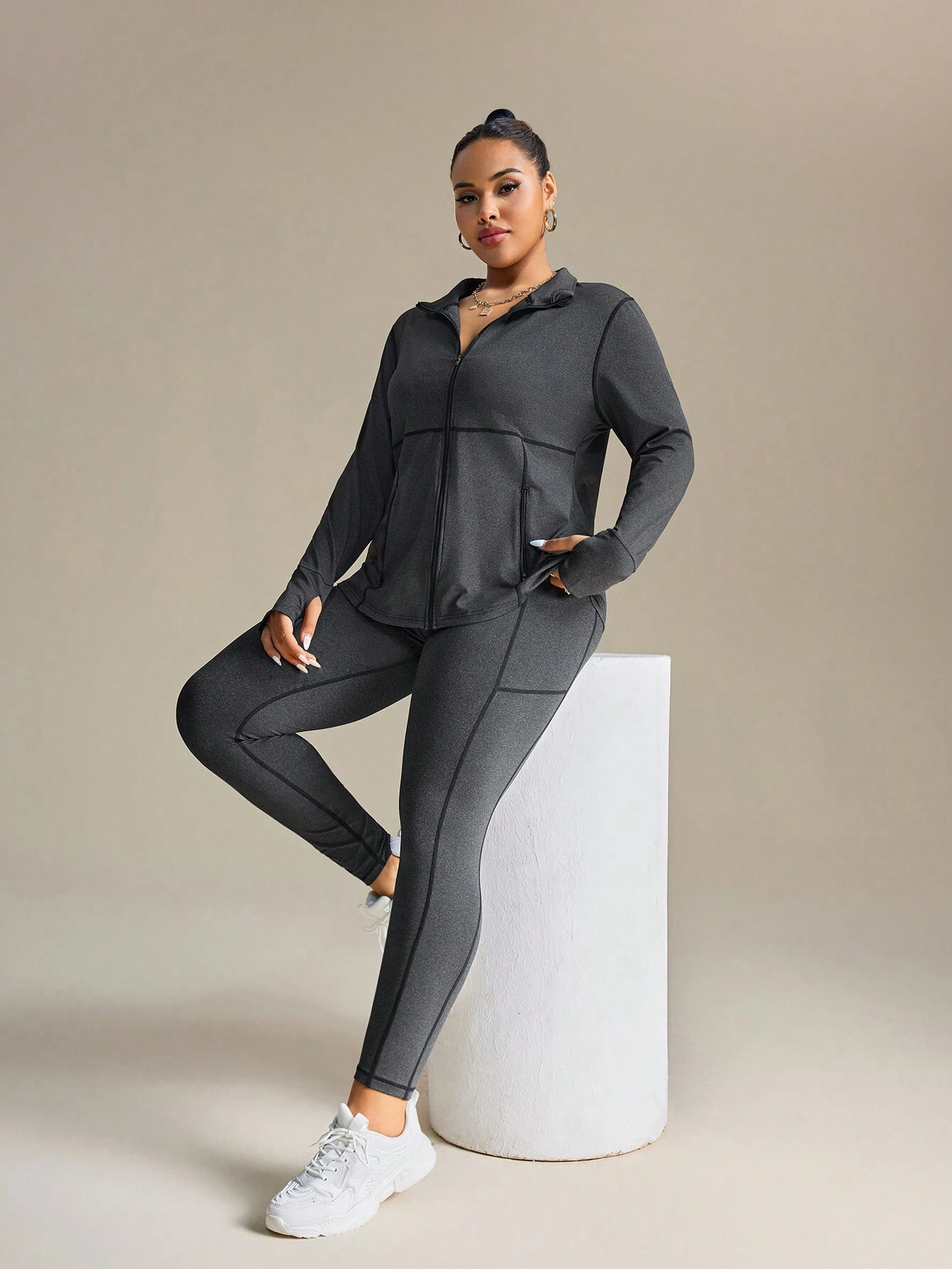 طقم بحجم كبير للنساء بسوستة، بياقة واقفة ومخطط، جاكيت وجيليه، طقم جيم للخريف للنساء
